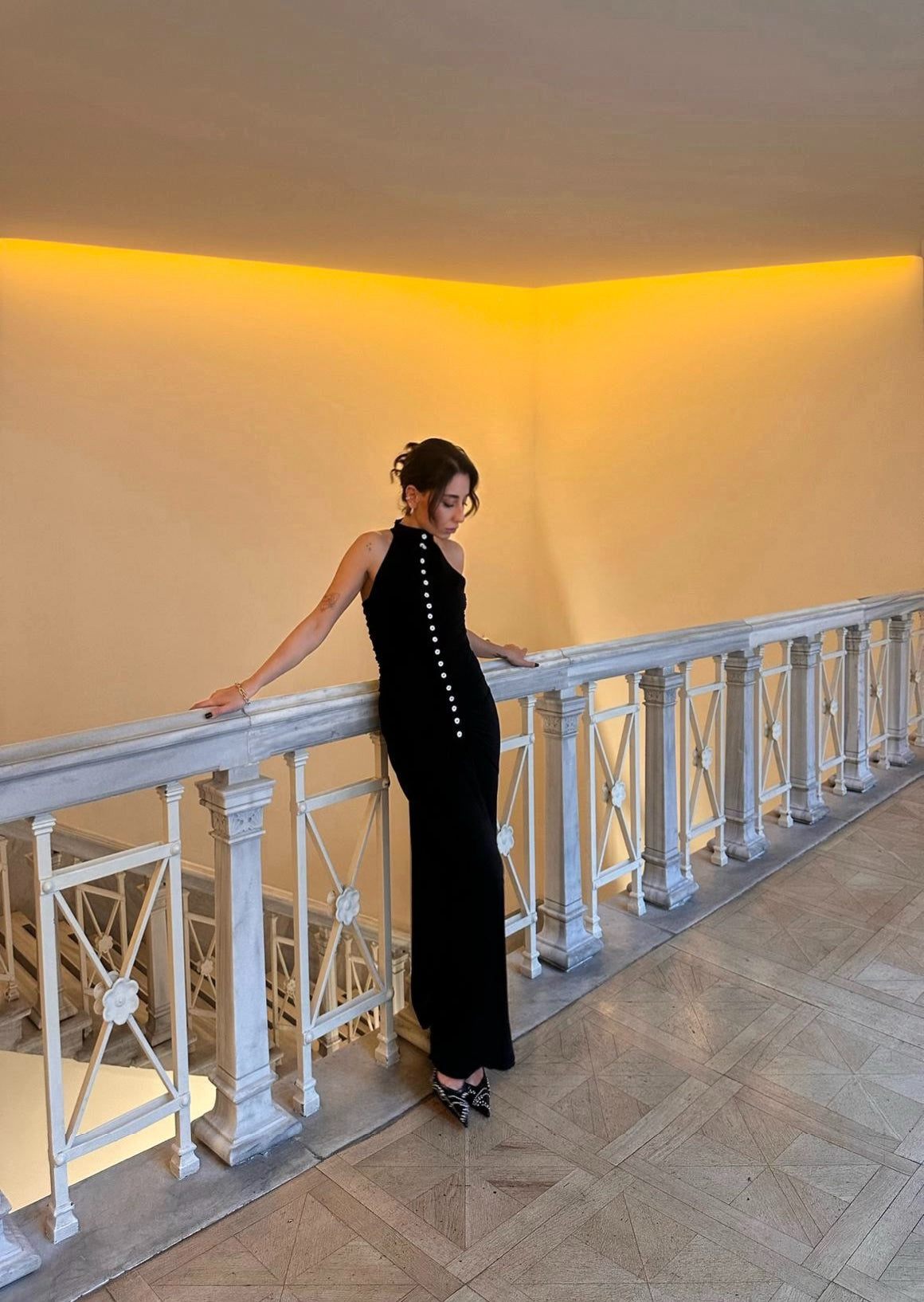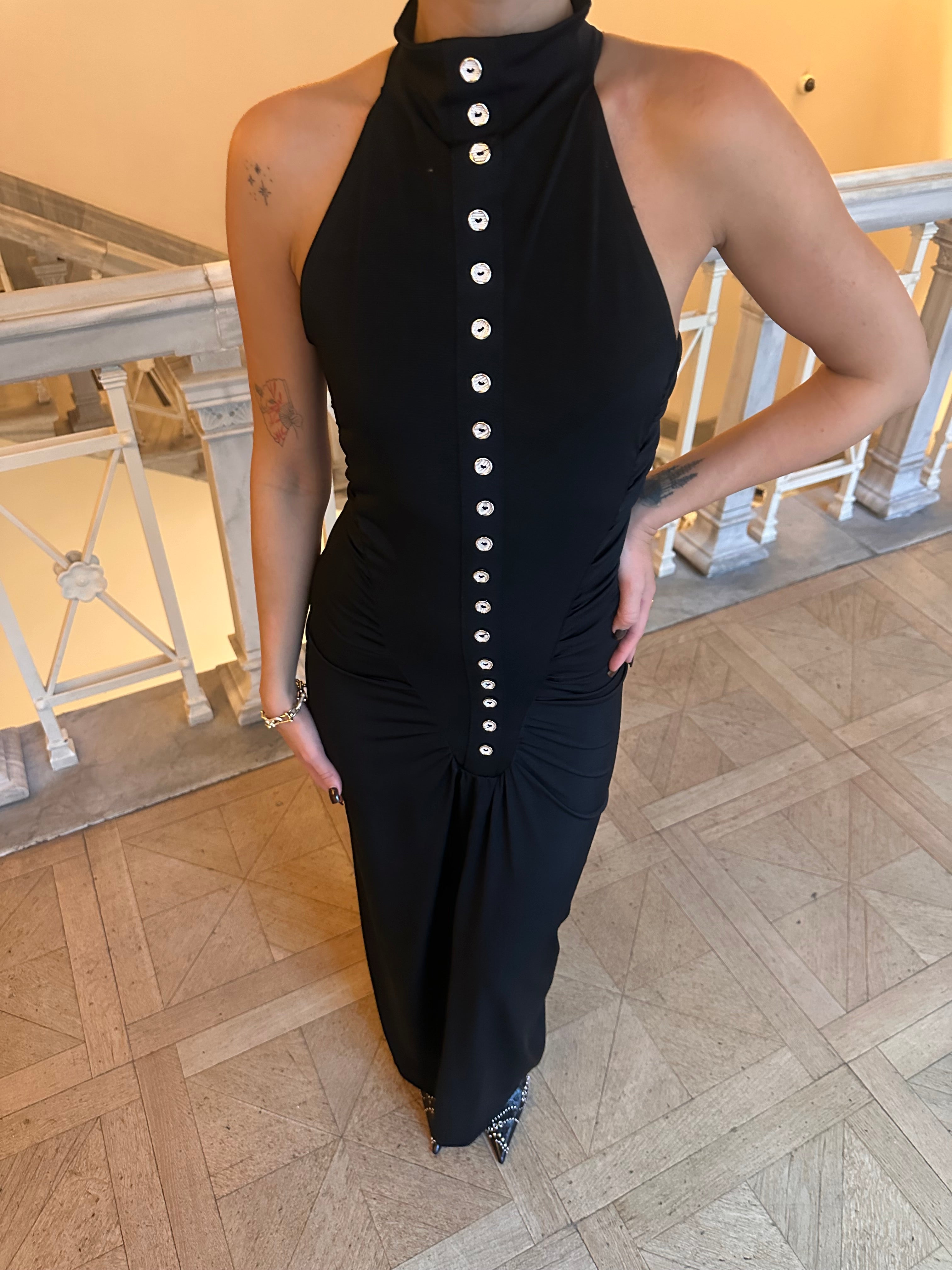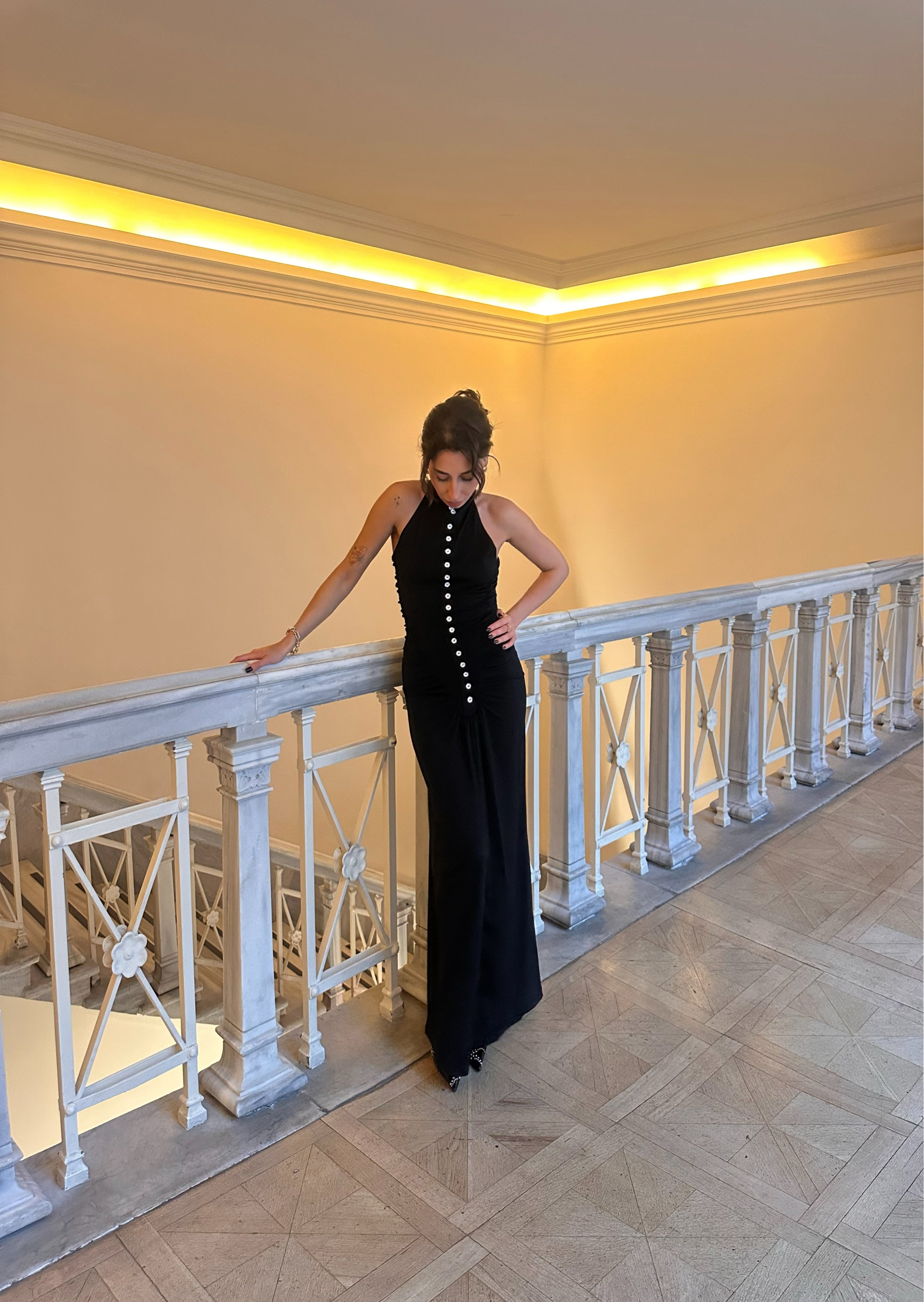 Vücudu kusursuzca saran siluetiyle her adımda özgüven ve incelik yansıtır. Derin siyah tonu, zamansız şıklığın sembolü olarak gece davetlerinden özel etkinliklere kadar her ortamda dikkat çeker.