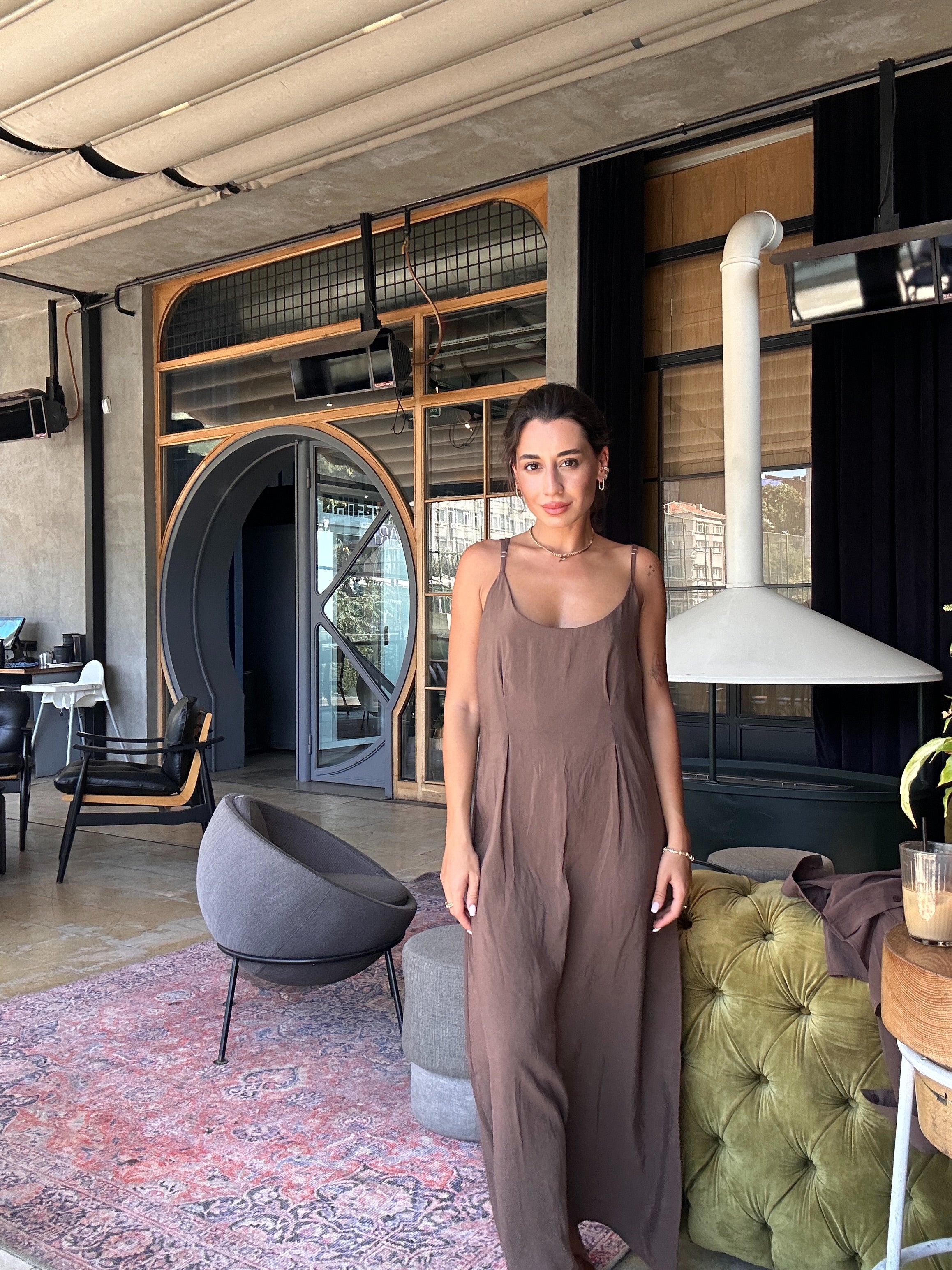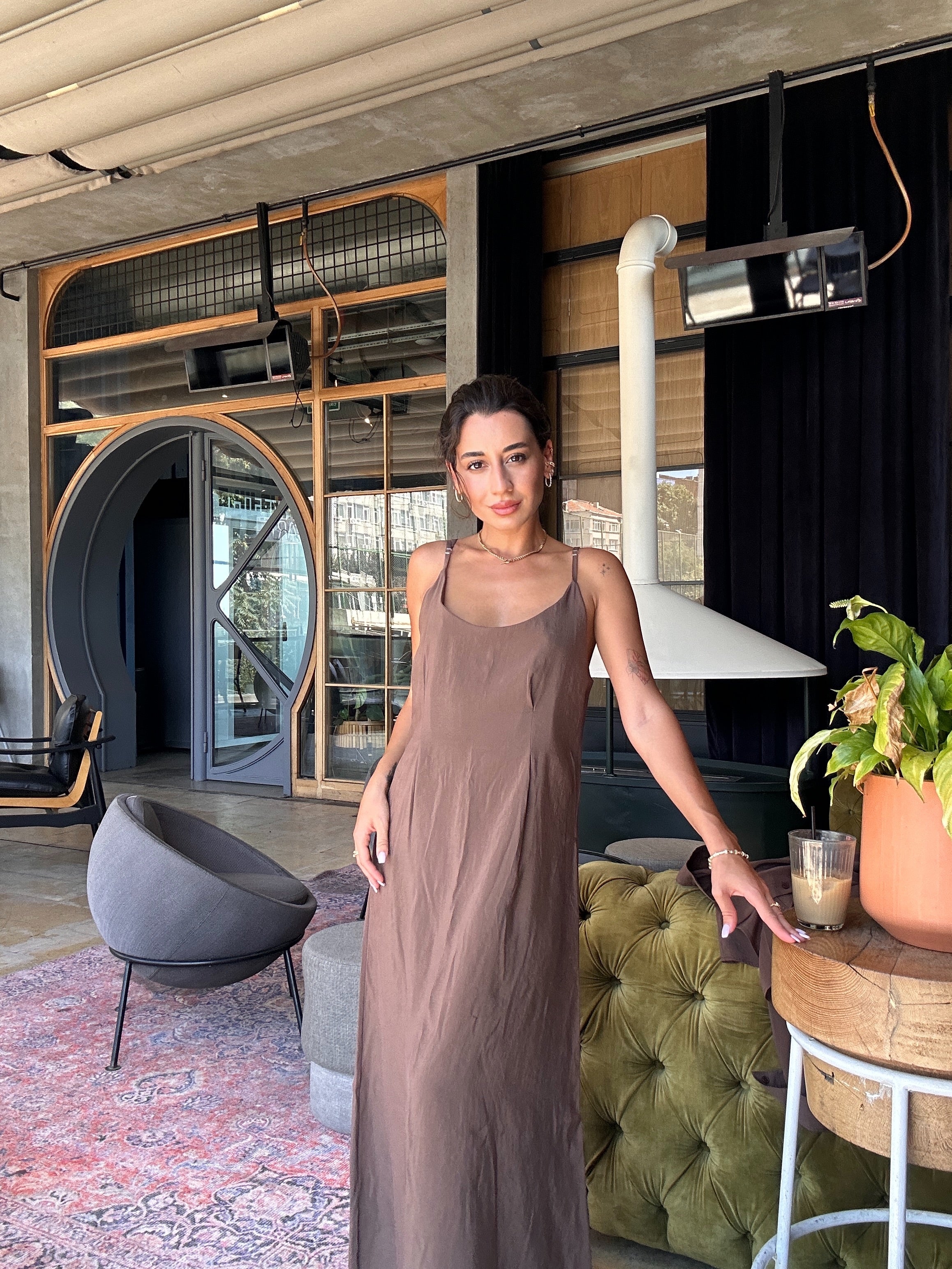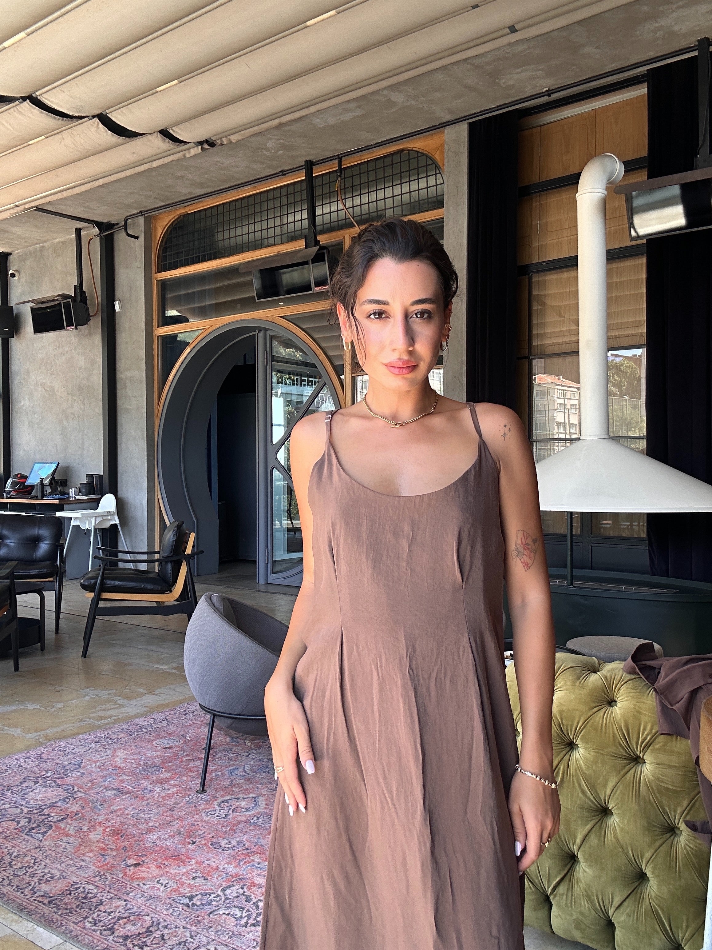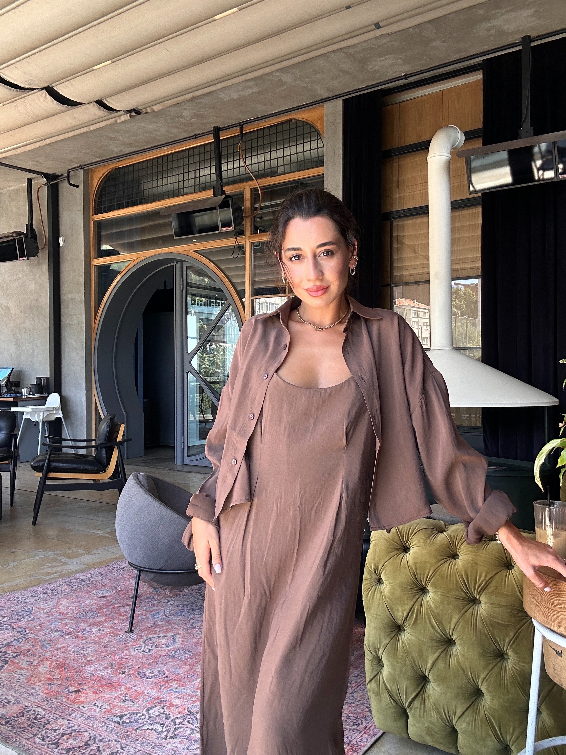 Minimalist ama çarpıcı görünümü, tek başına elbise olarak ya da hafif gömlek ceket ile kombinlenerek farklı şekillerde kullanılabilir.