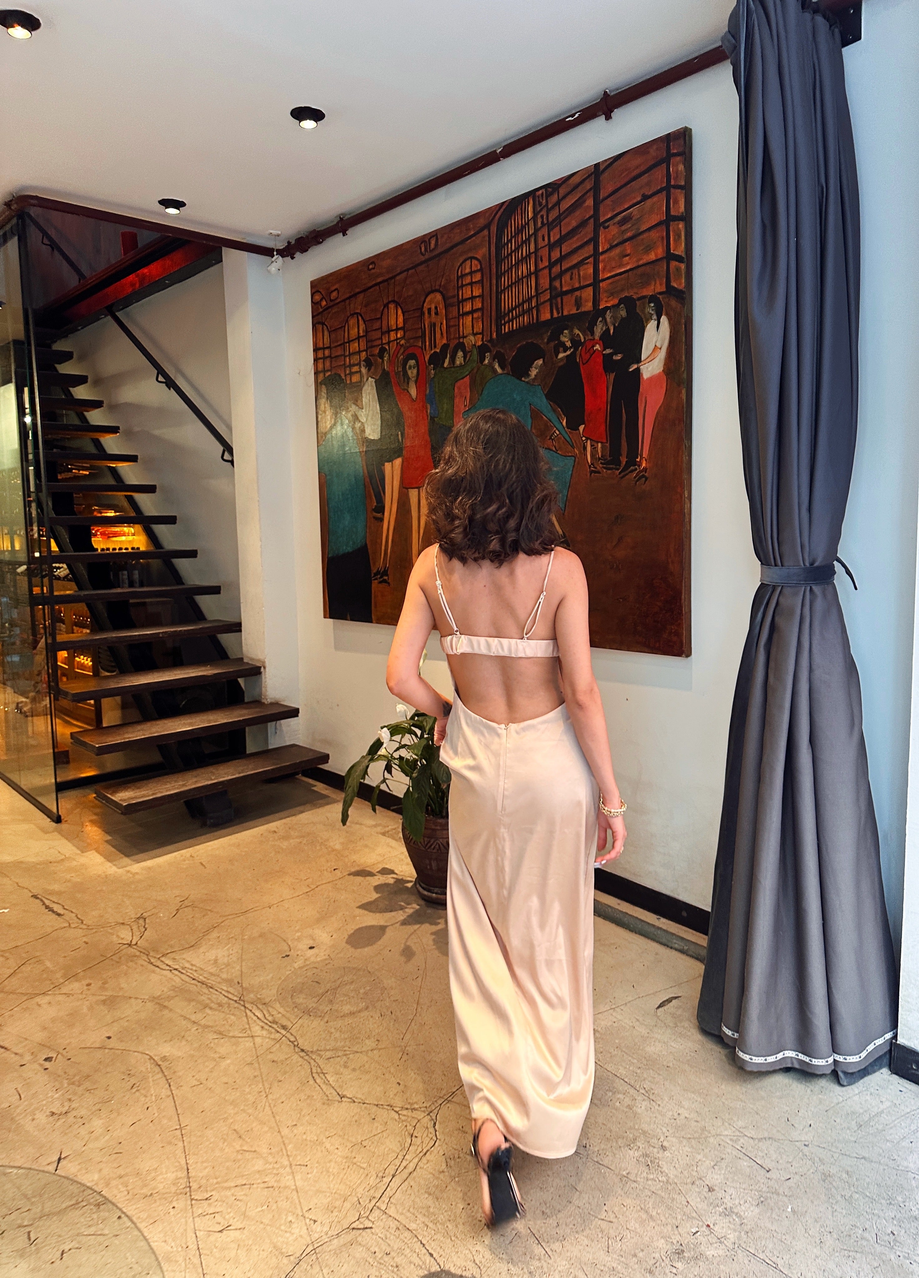 💥İnce askıları ve açık sırt detayıyla feminen bir siluet sunarken, uzun boyu ile özel günlerde şıklığınızdan ödün vermeden tüm gece rahat hissetmenizi sağlar.
