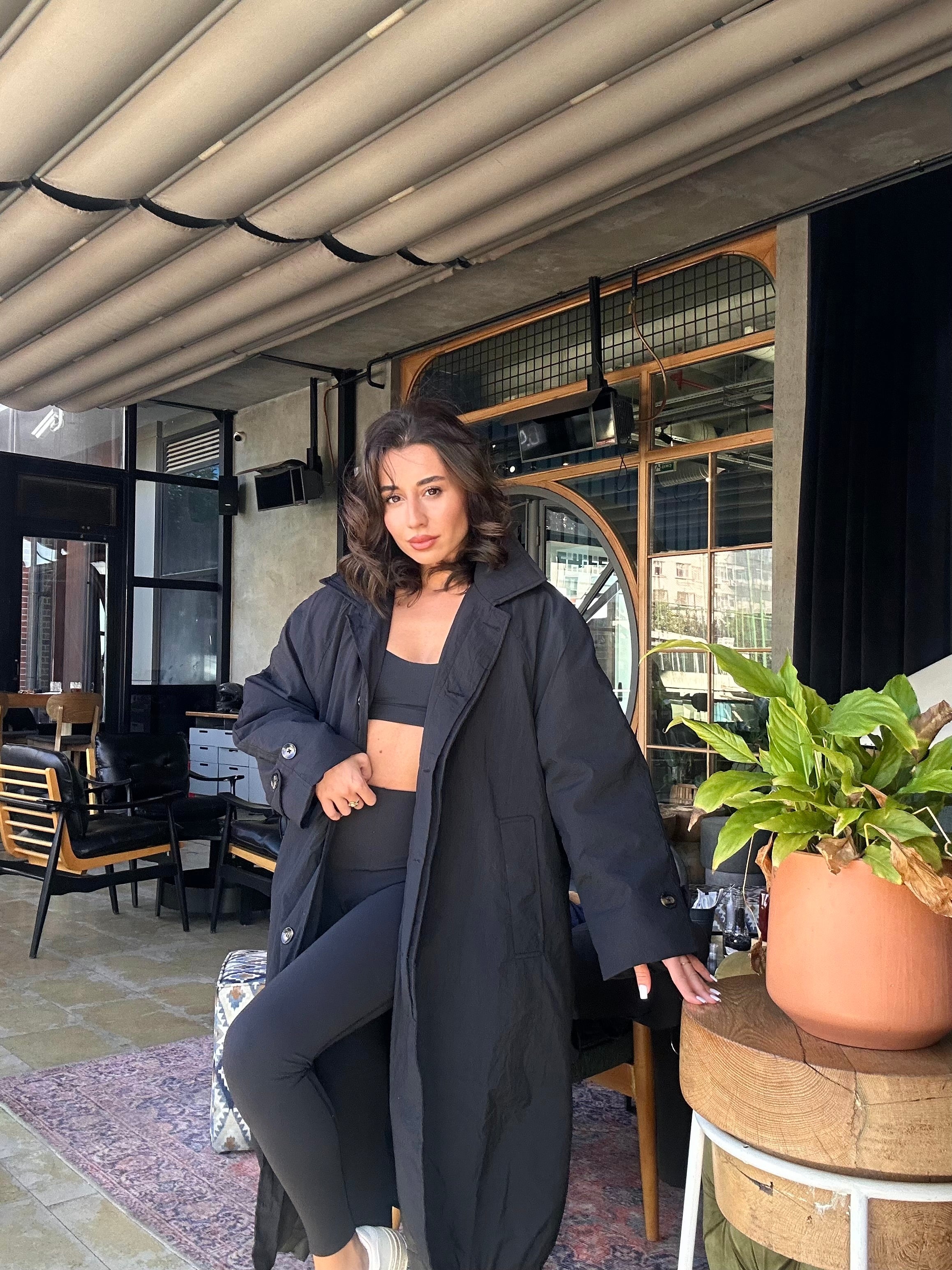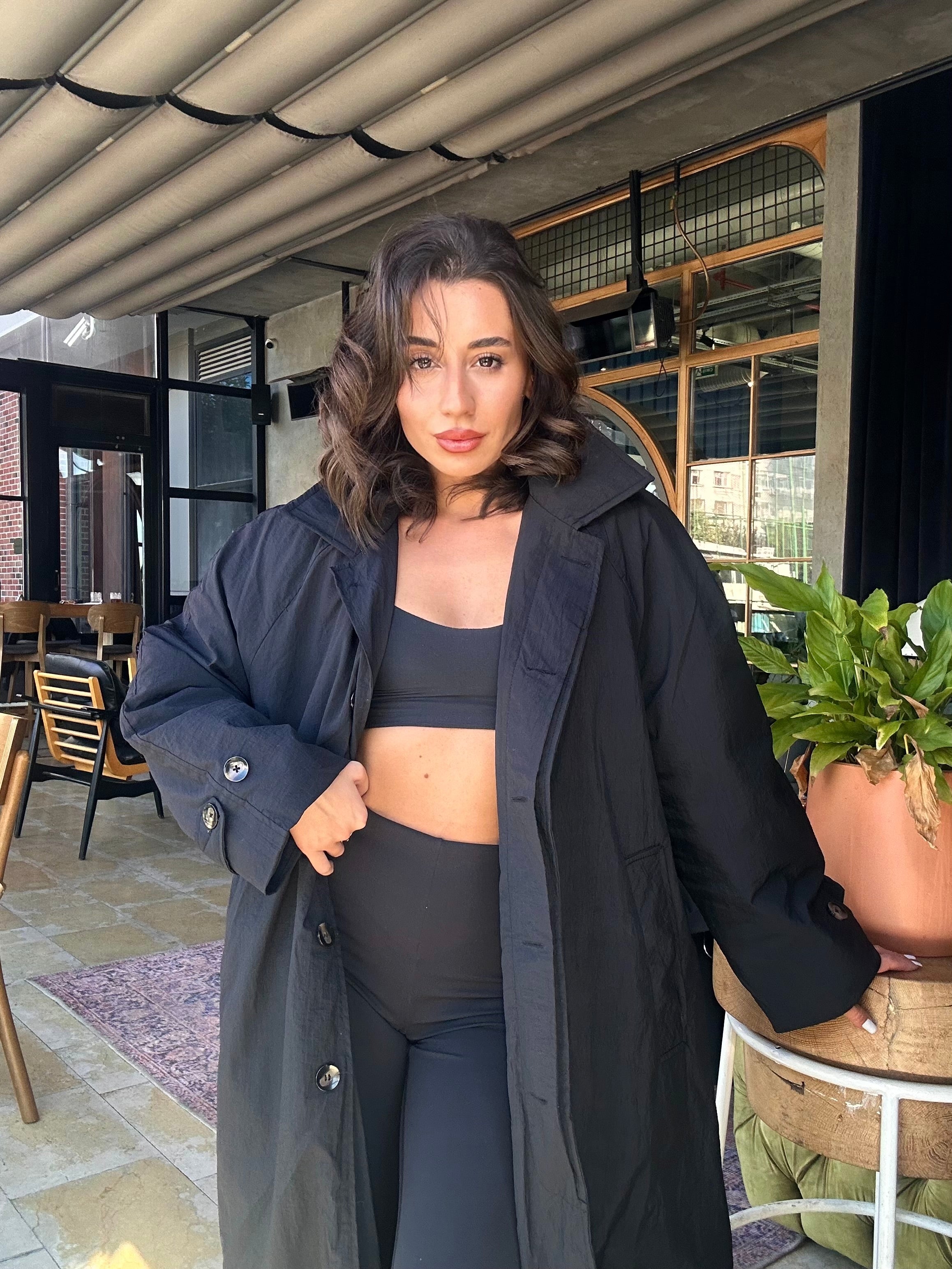 Siyah Düğmeli Uzun Mont