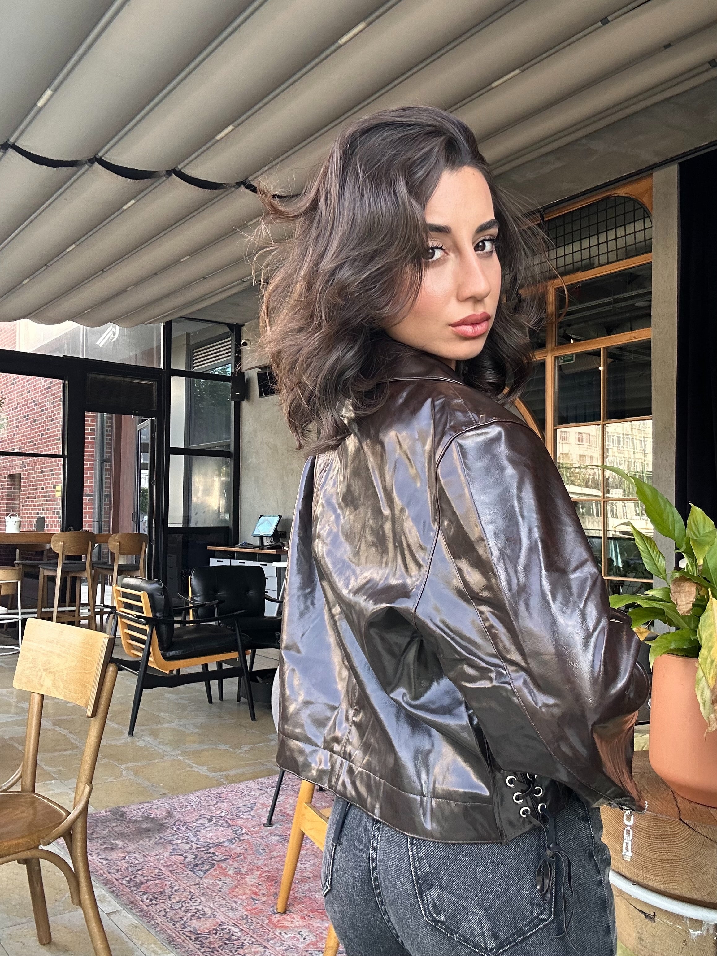 🔥Sanxoffical’ın Rugan Crop Deri Ceketi, modern tasarımı ve şık detaylarıyla gardırobunuzun vazgeçilmezi olacak. Rugan parlak dokusu ve cropped kesimi, stilinize şıklık ve dinamizm katıyor. Bel kısmındaki kemer detayı, ceketin formunu vurgularken rahat kesimiyle gün boyu konfor sağlar.