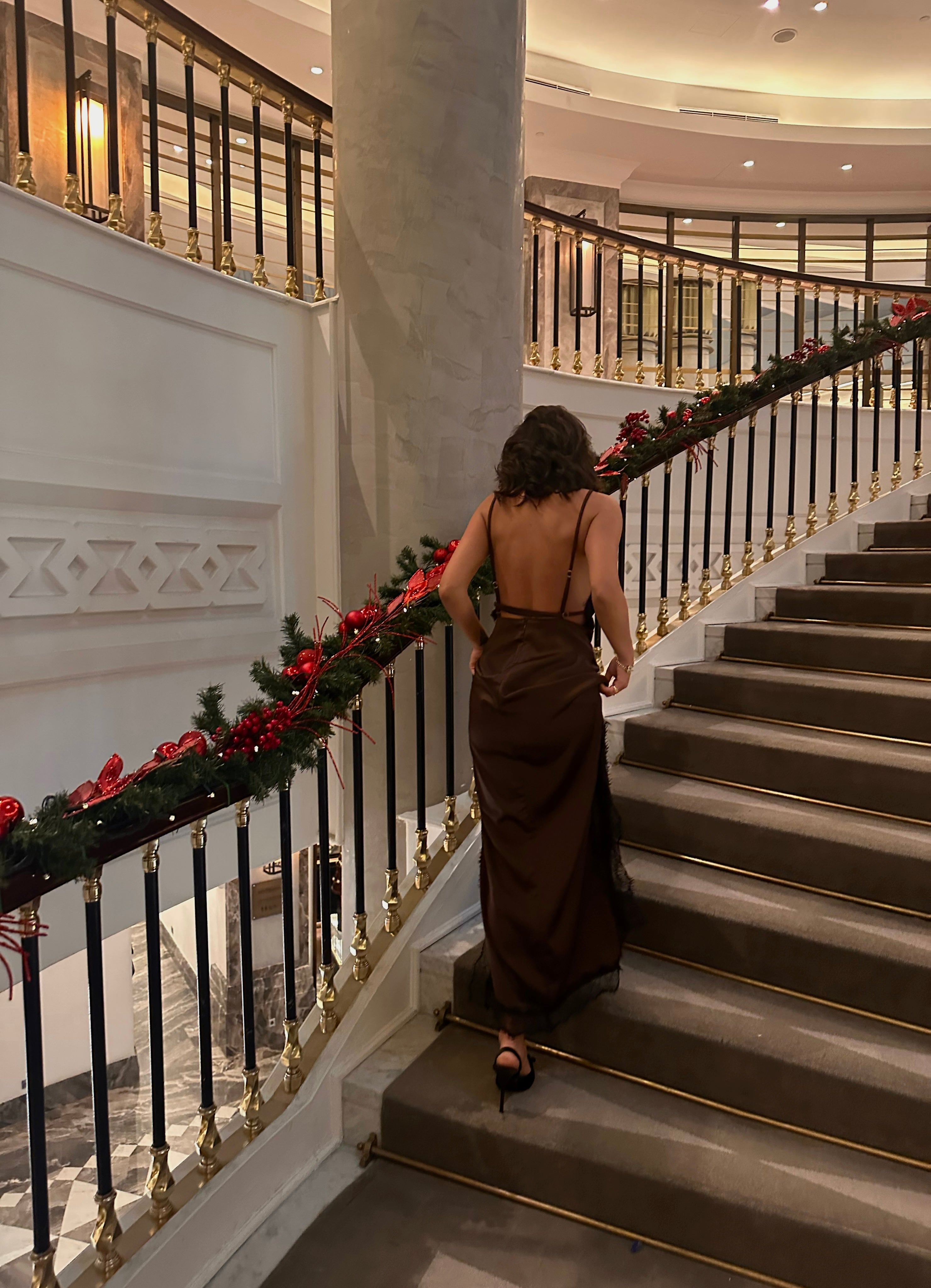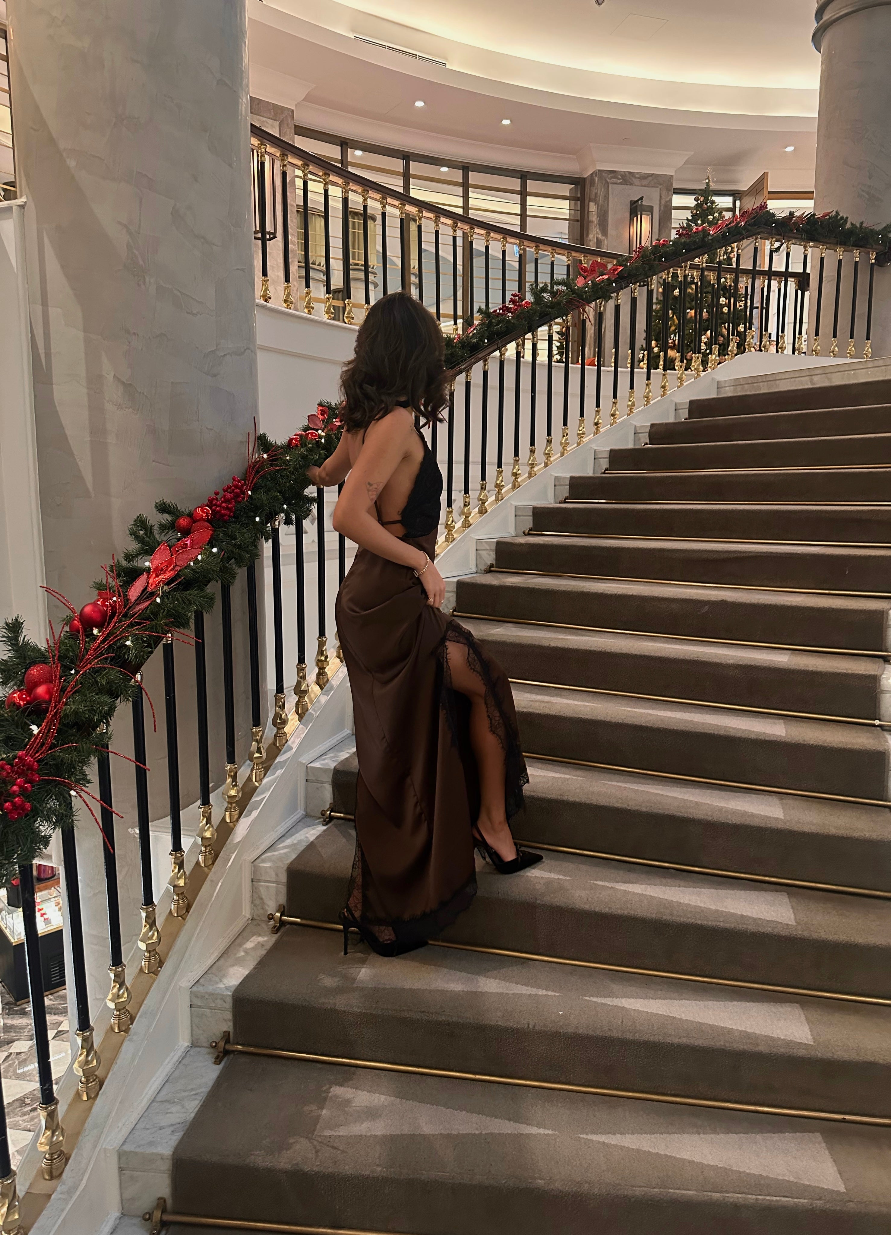 Akışkan saten dokusu ve feminen kesimiyle zamansız bir gece şıklığı sunan bu elbise, ilk bakışta etki yaratmak için tasarlandı. Işığı zarifçe yansıtan saten kumaşı, vücuda kusursuz şekilde otururken her adımda lüks bir akış hissi verir.